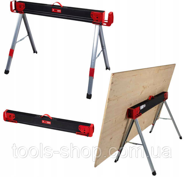 Це універсальне обладнання, яке можна ефективно використовувати як підставку для стільниці або верстата в гаражі, майстерні, на виробництві та будівельному майданчику. Витримує навантаження до 500 кг. Використовуючи 2 такі естакади, можна створити стійку та велику робочу поверхню. Стільниця й аксесуари до комплекту не входять!