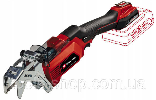 Для захисту акумулятора пилка обладнана вібростійким тримачем акумулятора, який знижує передавання вібрацій. Висока потужність акумулятора в поєднанні з міцним металевим редуктором дає змогу обрізати гілки завтовшки до 10 см. Пила працює з висотою ходу 20 мм і швидкістю ходу від 1500 до 2800 об./хв. Для безпечного обрізання однією рукою секатор обладнаний упором для гілок, який можна зняти без інструментів, що забезпечує краще захоплення гілки та запобігає зісковзуванню. Це дає змогу обрізати гілки завтовшки до 8 см, а також зачеплювати та легко витримувати вищі гілки.